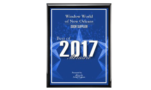 Each year, the Metairie Award Program identifies companies that have achieved exceptional marketing success in their local community and business category. These are local companies that enhance the positive image of small businesses through service to their customers and our community. These exceptional companies help make the Metairie area a great place to live, work and play, and Window World of New Orleans is proud to be recognized in the Door Supplier category!